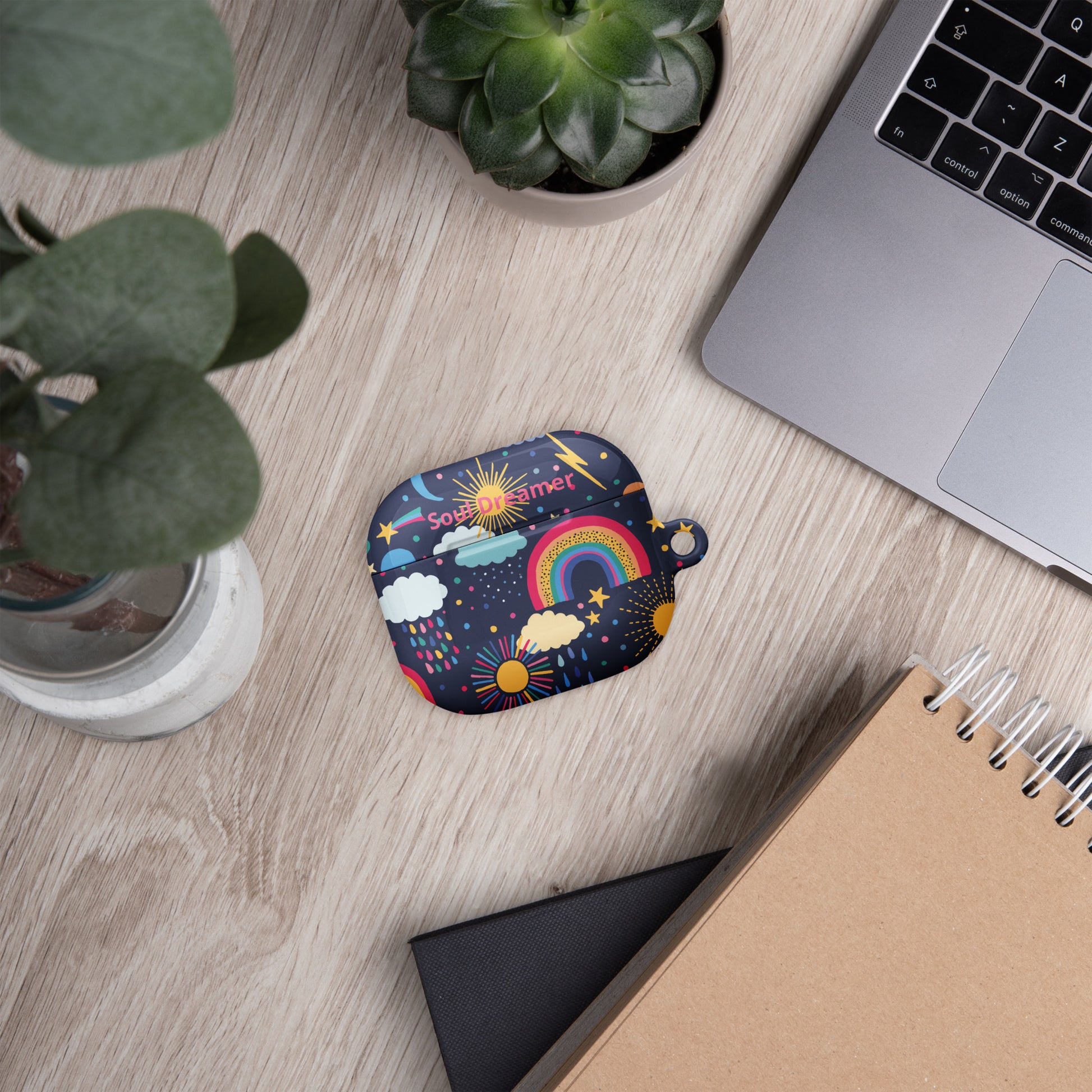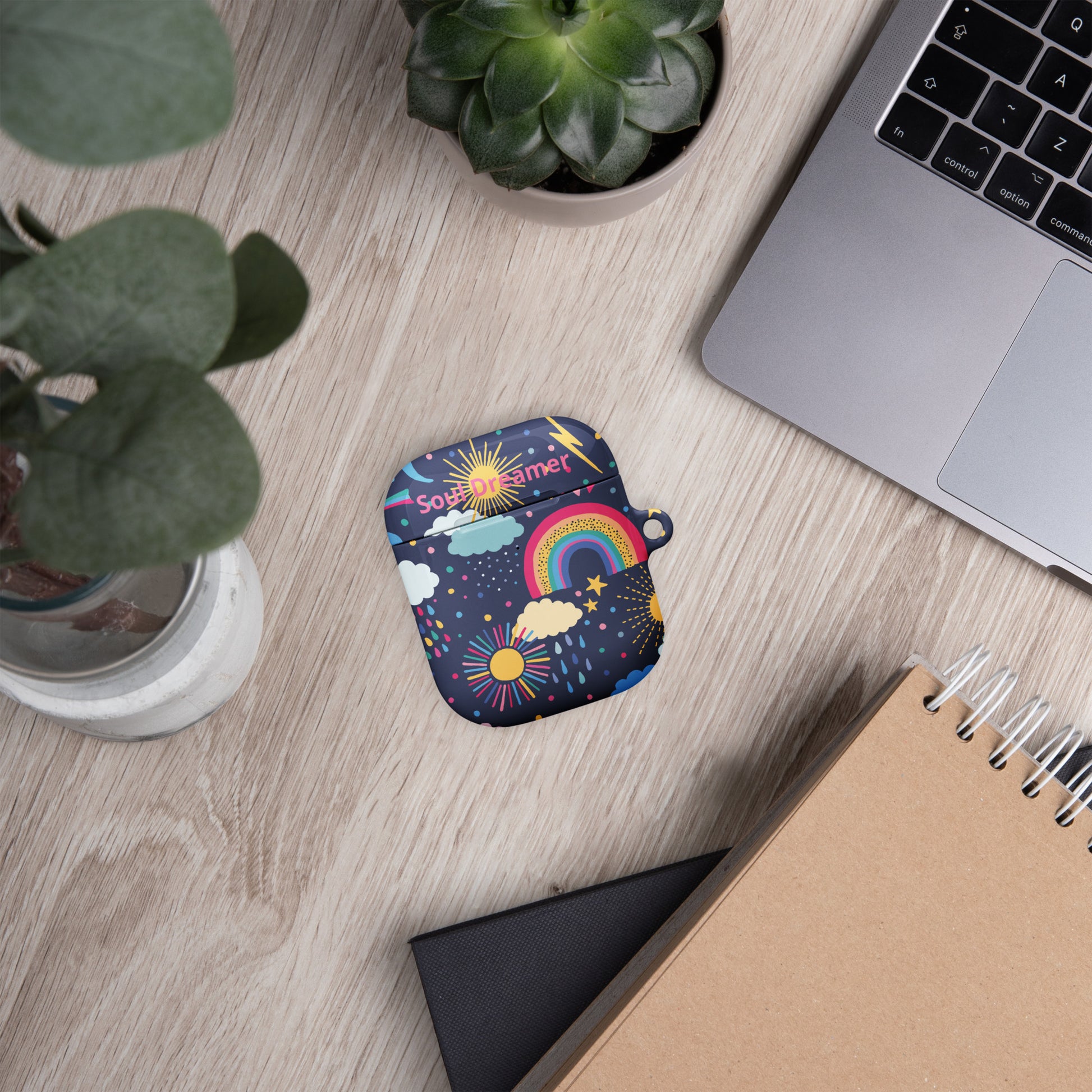 Protect your AirPods® in style! Crafted from premium impact-absorbing material, this case is the ultimate shield against scratches and drops, ensuring your earbuds stay pristine. With the added convenience of a metal carabiner, you can easily attach your AirPods® to your bag, keys, or anywhere else for easy access.